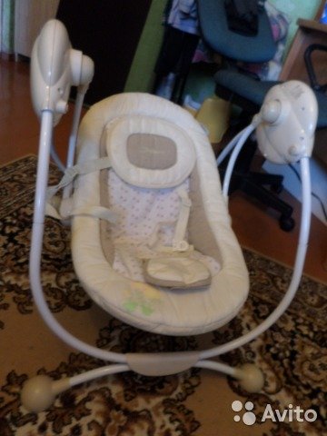 Качель б/у в хорошем состоянии, один режим качания, работает и от сети, и от батареек (было на батарейках, муж переделал и от сети). В связи с этим мелодии не играют, если от сети, если на батарейках, то мелодии работают. Мелодий штук 5.