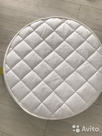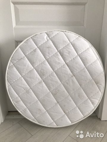 Детский ортопедический матрас для круглой кроватки. Наполнитель кокосовая койра и aloe vera. Две стороны, жесткая и мягкая. Гипоаллергенный. В идеальном состоянии. Пользовались 2 недели, тк перешли на овальную кроватку.